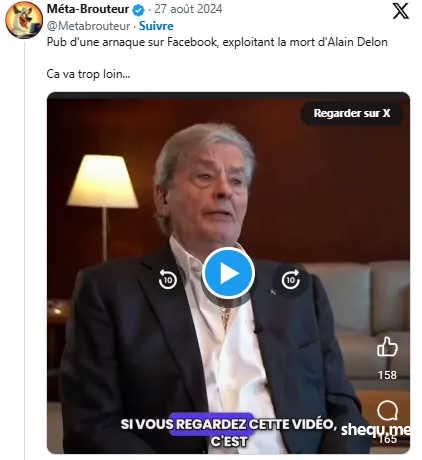 有一点可以肯定,这种虚假视频真的有人相信。骗子团伙向Meta(全球最大的社交网络服务网站)付费来播放这些广告。他们乐此不疲地这样做,说明这些广告真的有效。我相信,阿兰·德龙的虚假视频也为他们带来了盈利,因为他们已经开始再次向Meta支付费用来推广这个骗局了。