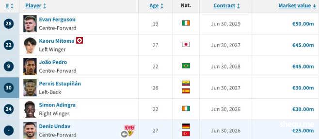 布莱顿的球员价值相比于购入时往往有巨大提升 |transfermarkt.com